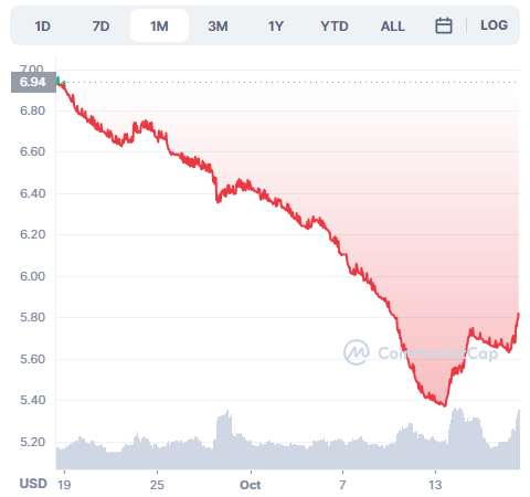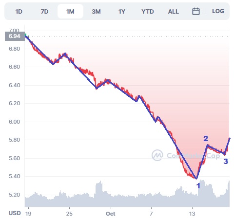 So here is a chart - of a crypo-currency, well not really a currency, a crypo coin, or a crypo token - just some arbitrary crypo thingy.  It is a line chart, that is all that is available.